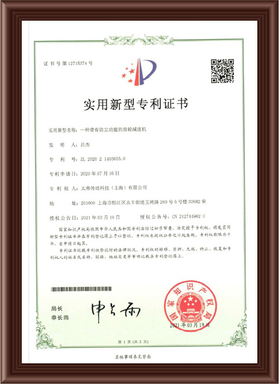 太弗傳動科技(上海)有限公司,是臺灣太弗科技工業于上海成立的服務據點,2013年元月正式營運。提供廣大中國客戶更便捷的產品購買及技術支持。 太弗科技專業從事各種精密減速機的研發、生產、設計、銷售,為國際貿易綜合發展的高科技企業。總部設在臺灣臺中, 組織下太弗傳動科技(上海)有限公司。